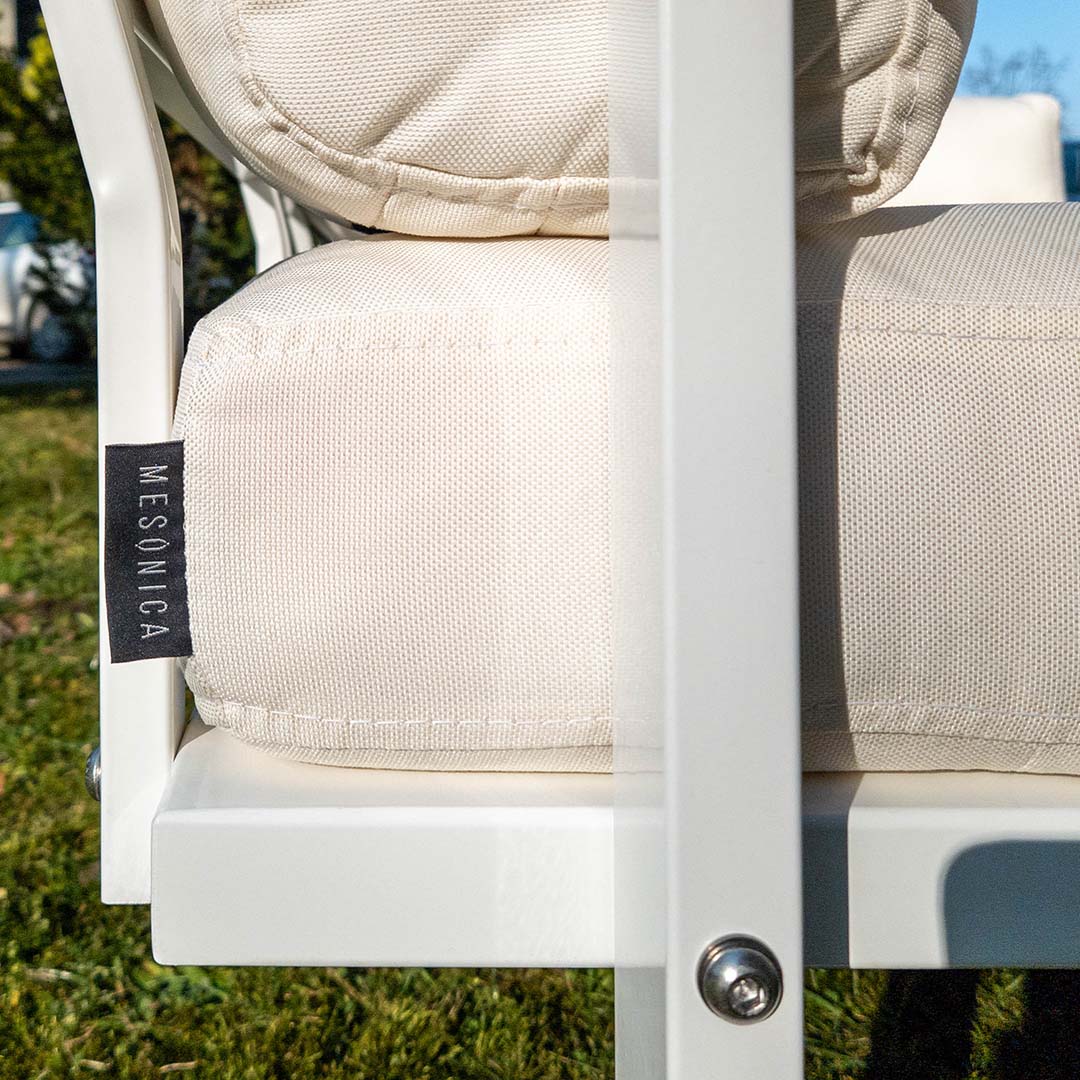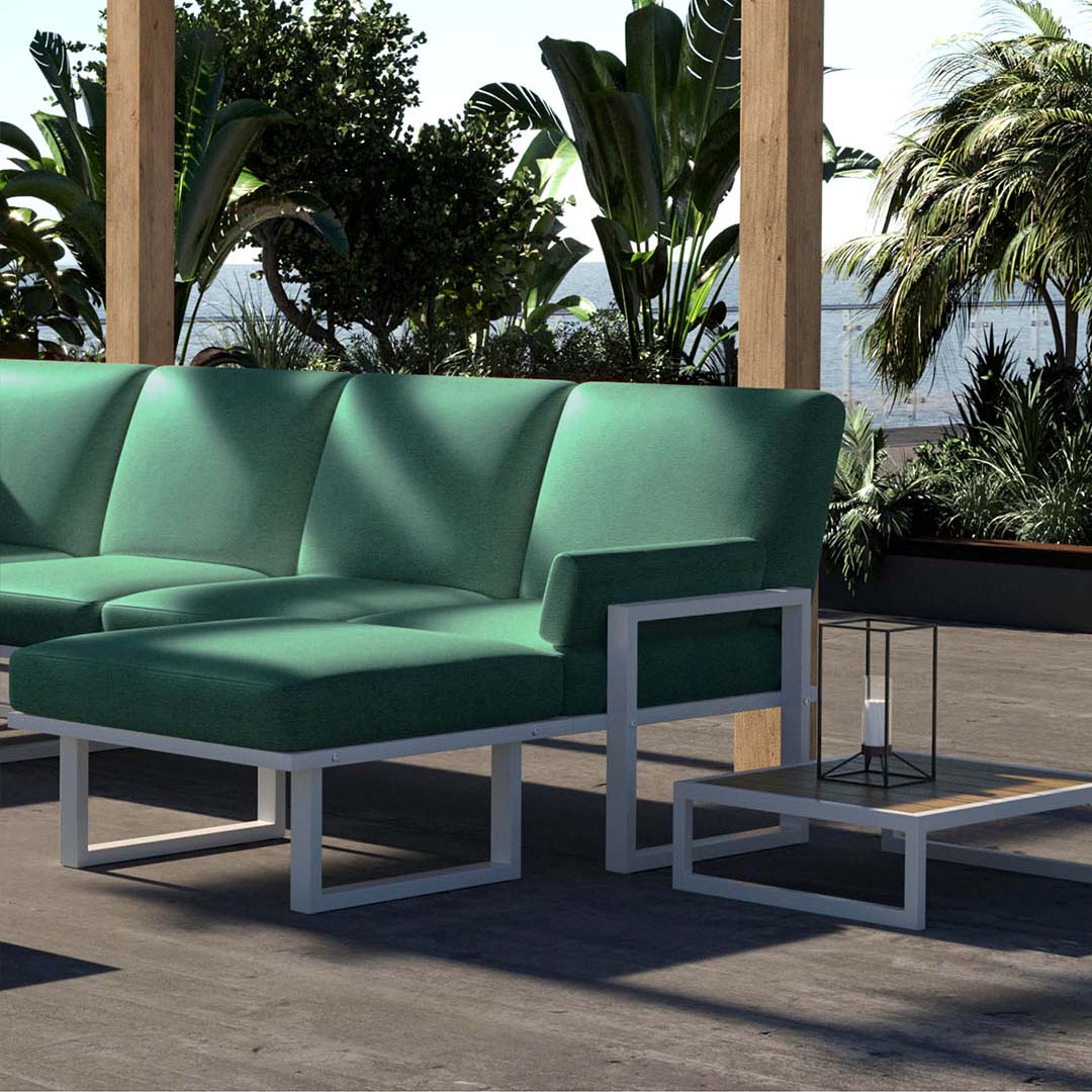 Mit dem Sofa Soledo wird Entspannung im Freien auf ein ganz neues Niveau gehoben. Das Design des Sofas garantiert Komfort für alle und seine vielseitigen Einsatzmöglichkeiten machen es zur idealen Ergänzung für jeden Außenbereich. Ob Sie die Sonne genießen oder einfach nur Zeit mit Freunden und Familie verbringen möchten – das Sofa Soledo bietet den perfekten Rahmen. Bereichern Sie Ihr Outdoor-Erlebnis mit dem Sofa Soledo. Der robuste Stahlrahmen ist in zeitlosen Weiß- und Anthrazittönen erhältlich, und der wasser- und fleckenabweisende Olefin-Bezug ist in zwei Farbpaletten verfügbar. Die erste bietet dezente, klassische Farben, die zweite lebendige und auffällige Optionen, um Ihrem Außenbereich einen Farbtupfer zu verleihen.