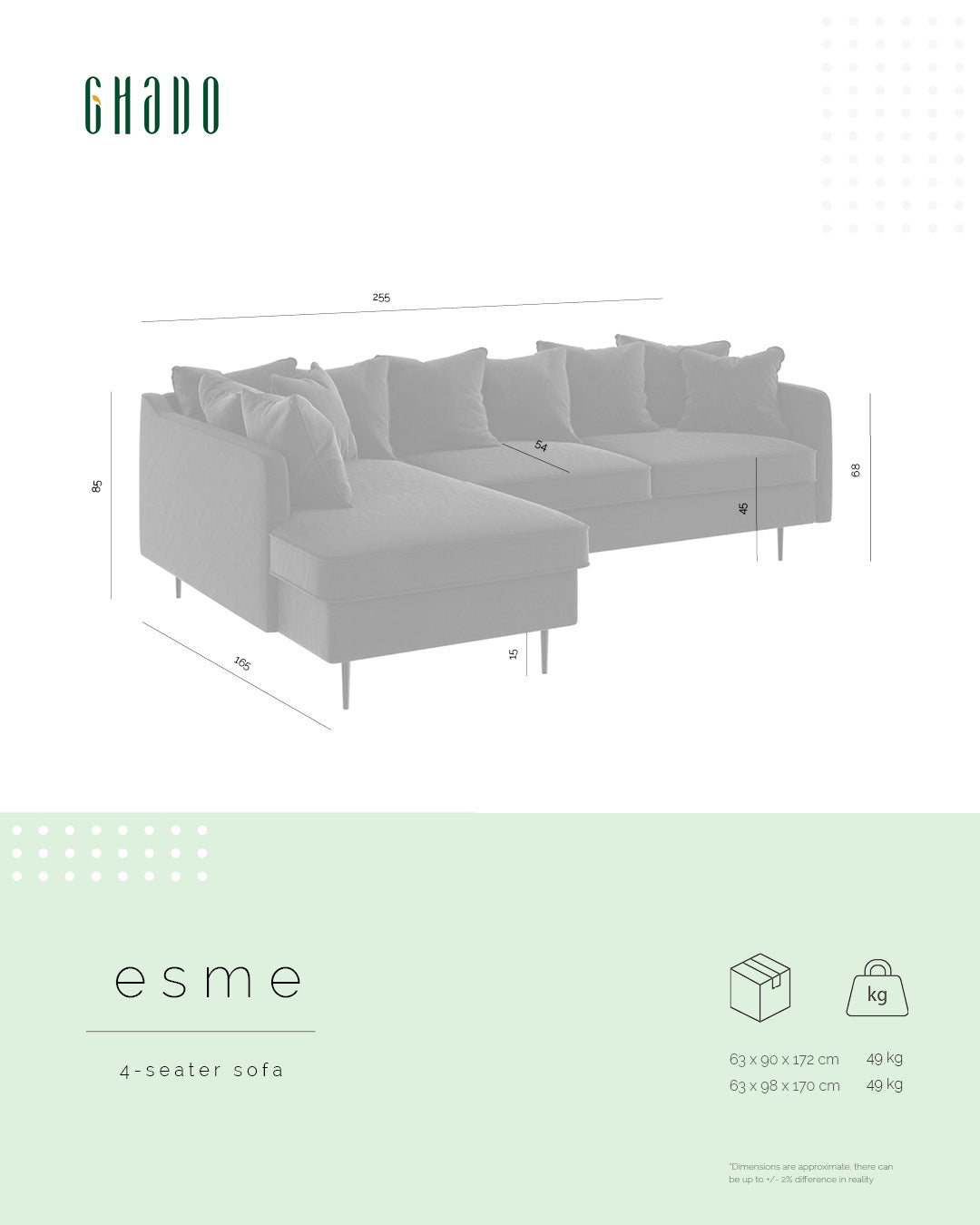 Can’t decide between the sleek charm of minimalism or the artistic chaos of the Bohemian style? Just like you, we don’t like to compromise – to free you from any dilemmas, we’ve created the ESME sofa. With its metal legs and thin sides, it offers comfy, laid-back style pillows that can be easily replaced with their modern-style counterparts for a contemporary appearance. Whichever style you prefer, the touchable velveteen upholstery will infuse your space with warmth and coziness, giving you a welcoming nook to relax. Sounds like a dream? Go for ESME and make it a part of your reality!